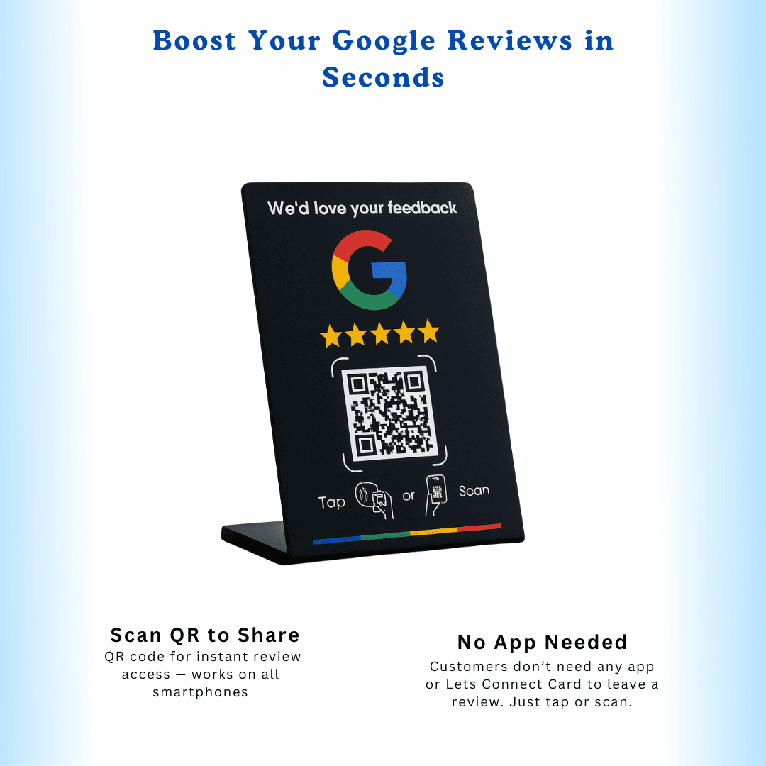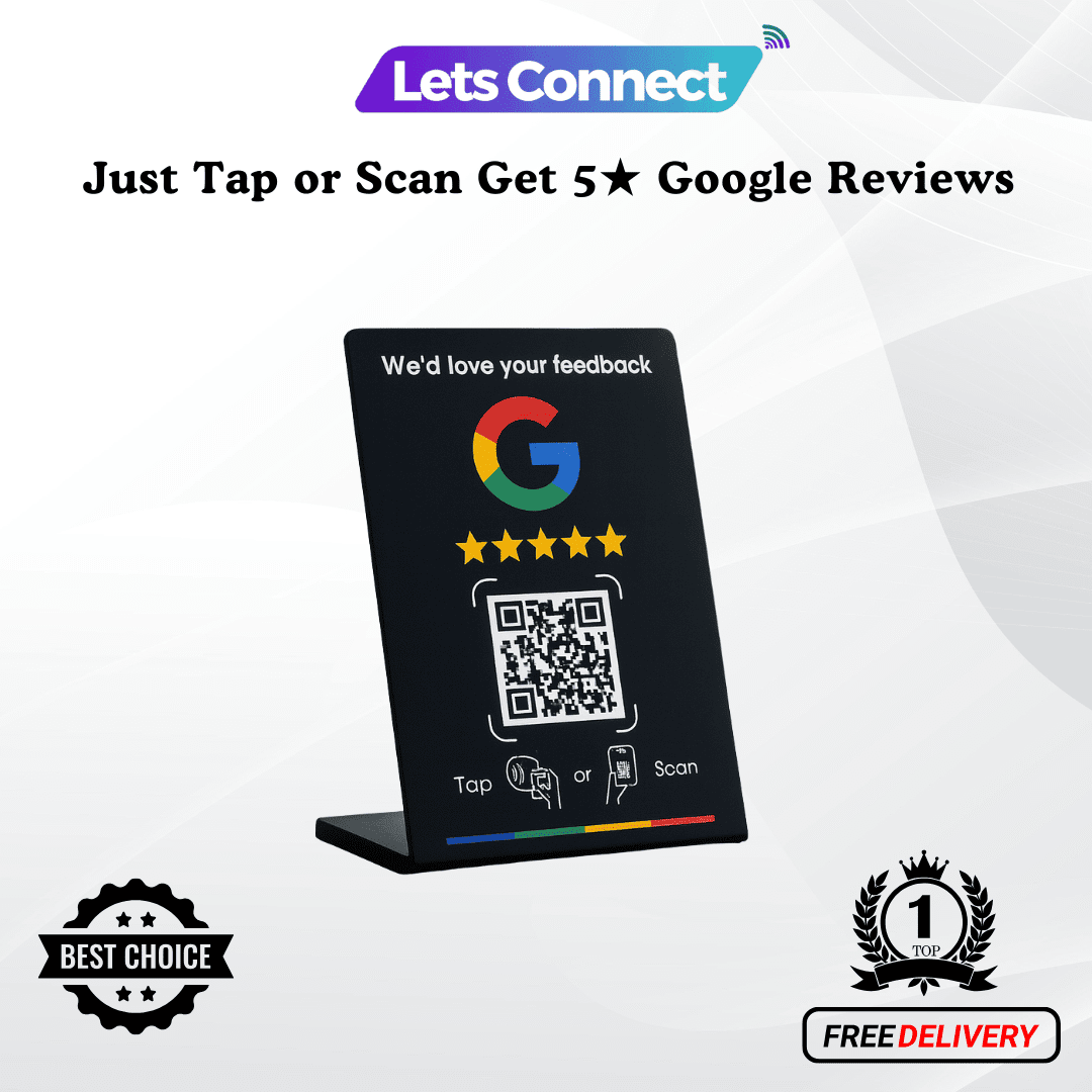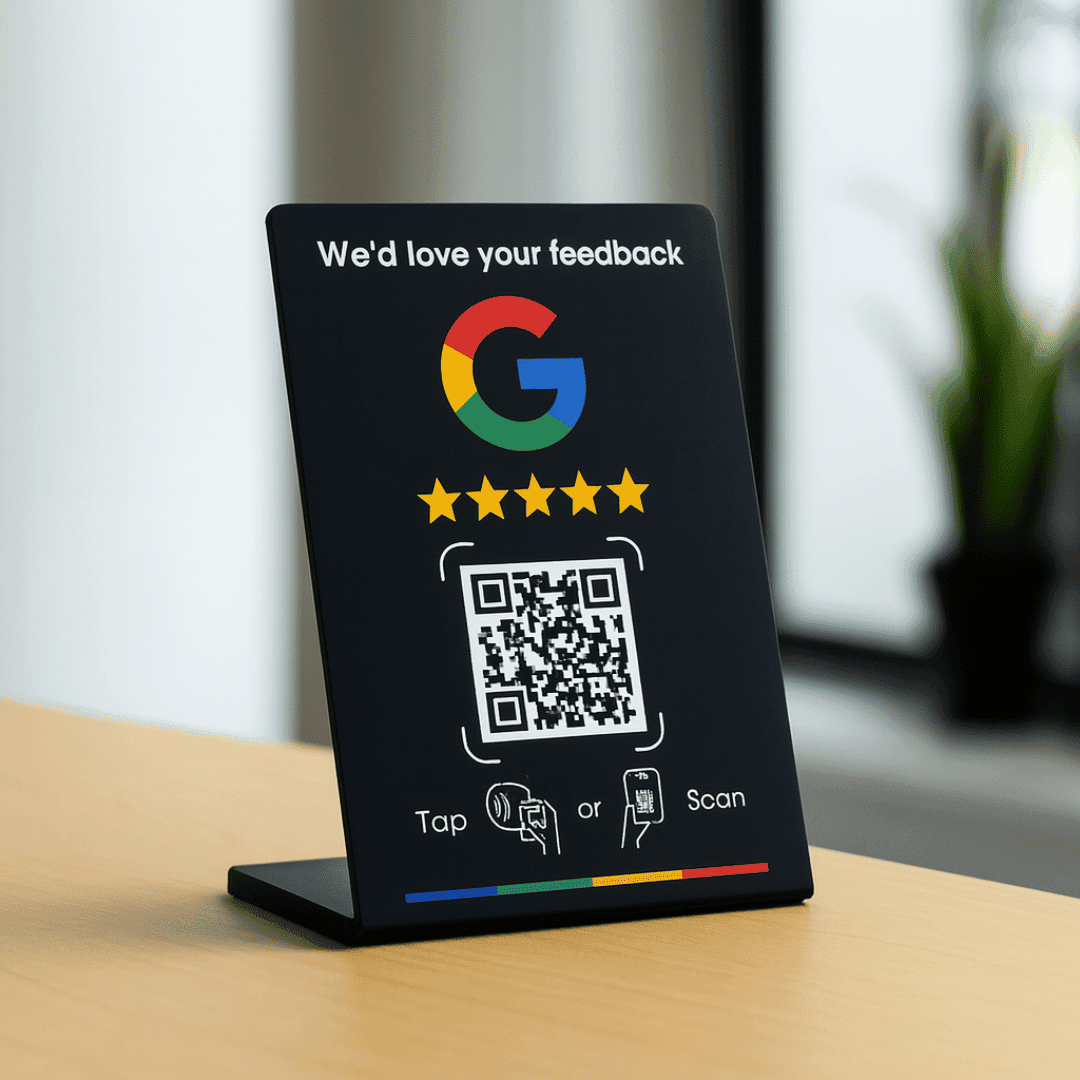 Boost your visibility, trust, and local SEO rankings with NFC Google Review Stands – Tap & QR Code Review Displays.