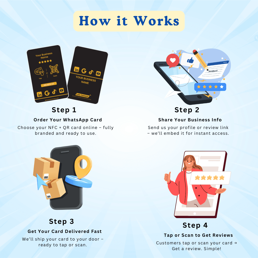 It’s a smart NFC + QR card that lets customers leave reviews on multiple platforms from one tap.