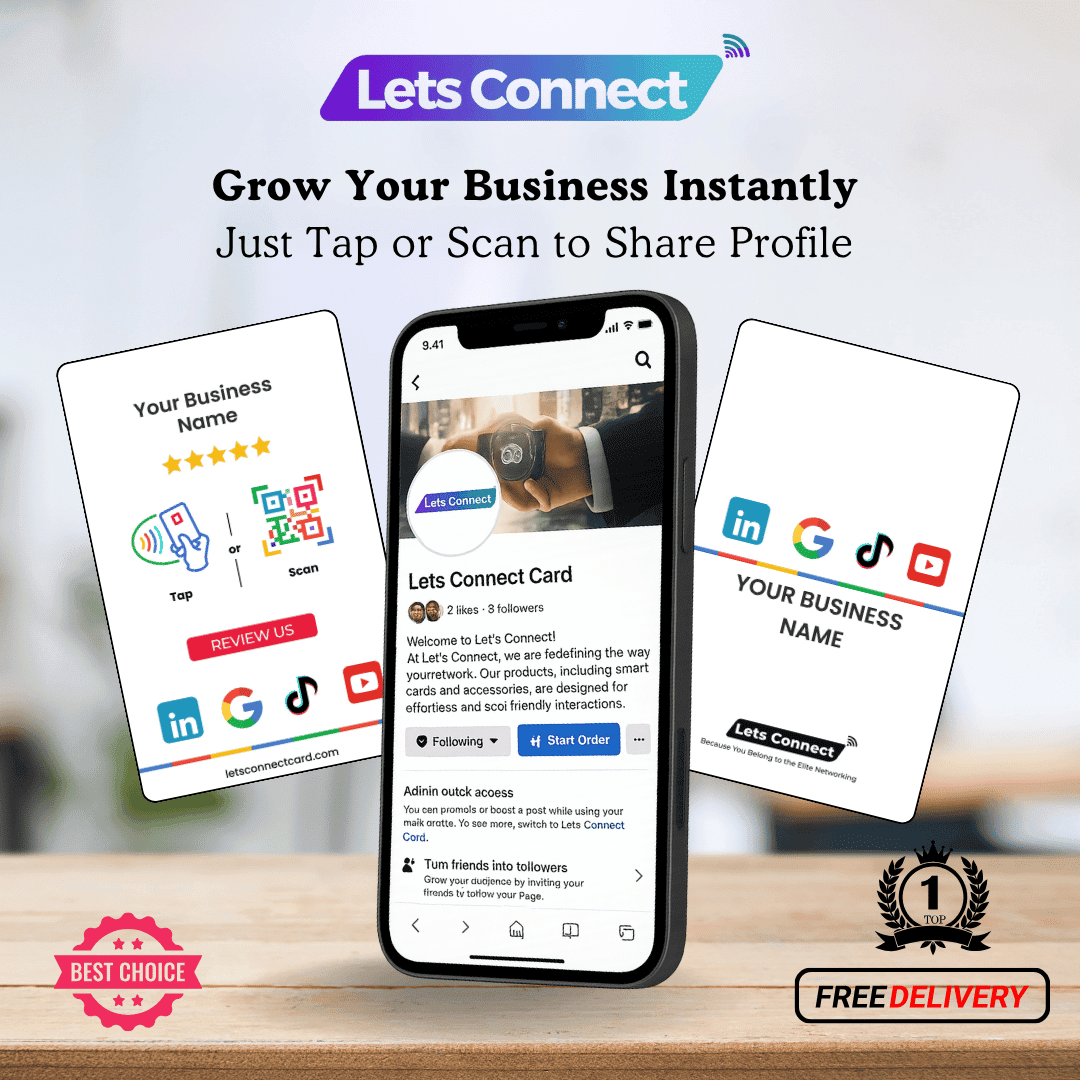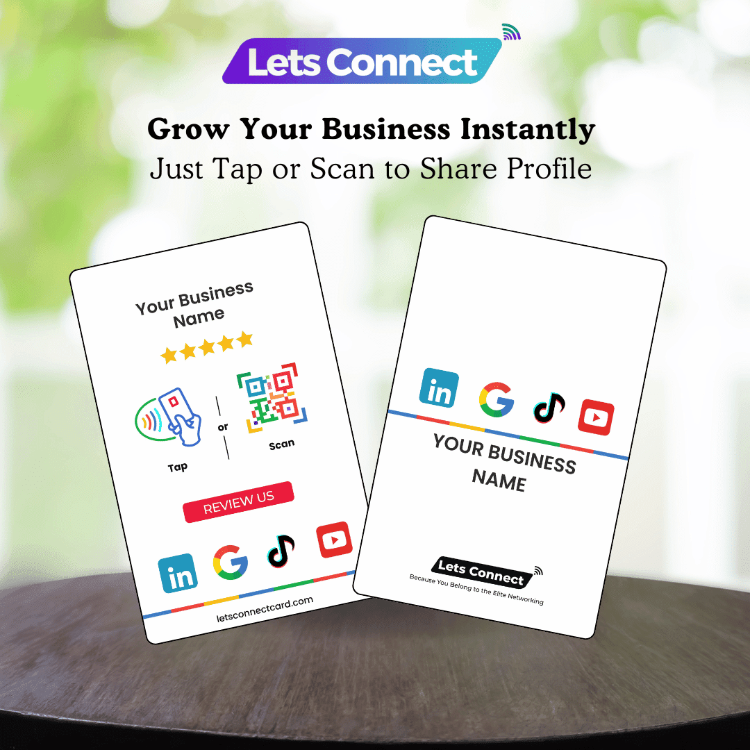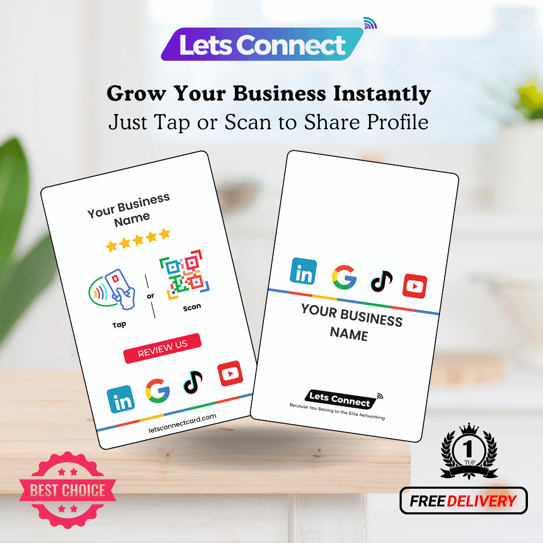 Make it easy for customers to review you anywhere they want. Collect more feedback and build trust with the Multi Link Review Card with NFC & QR Code by Let’s Connect.