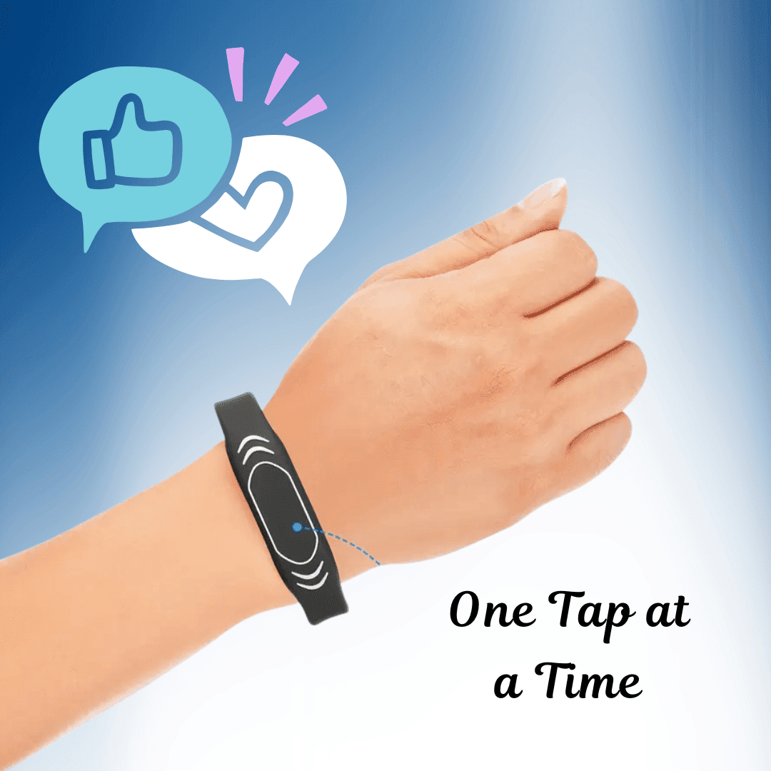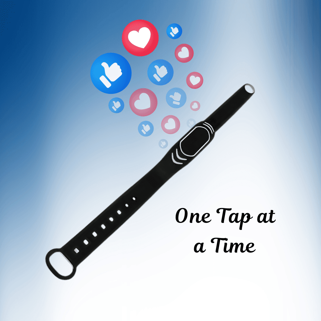 Just a tap on the silicone wristband instantly shares your profile, contact, link – no apps needed.
