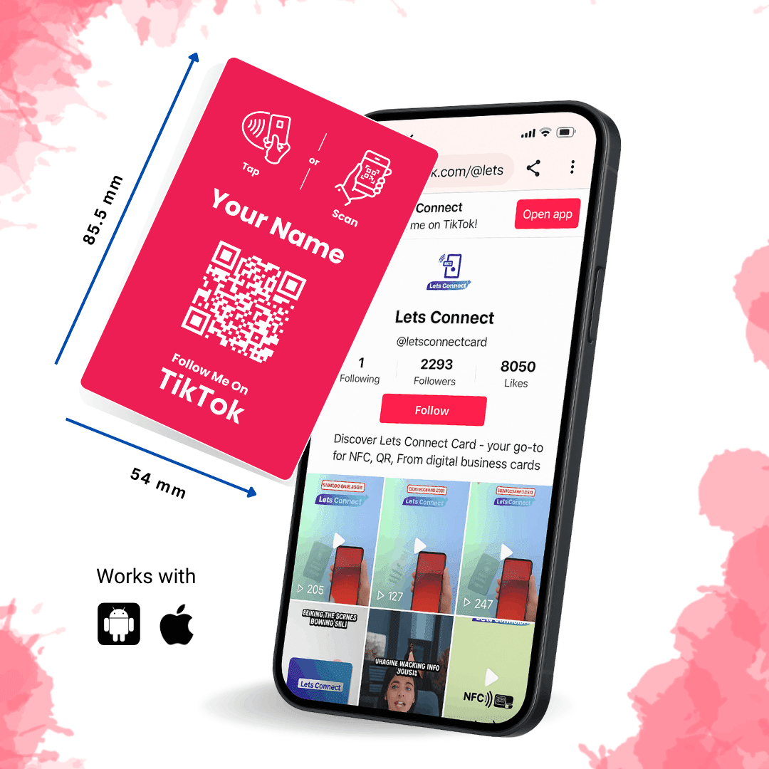 Share your TikTok profile, videos, or campaigns instantly with the TikTok Display Card by Let’s Connect. Just tap or scan—network faster, engage smarter, and grow your following effortlessly.