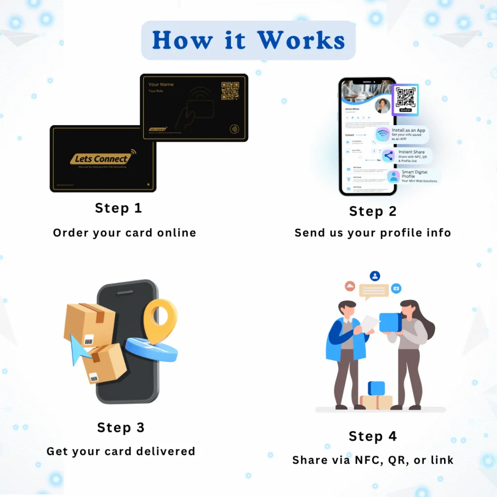 Smart Virtual Business Cards that help you share your contact info, socials, or portfolio with one tap — no app required.