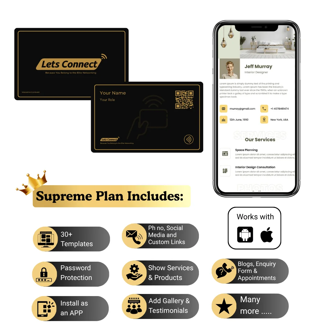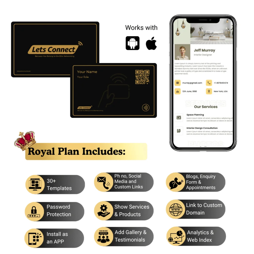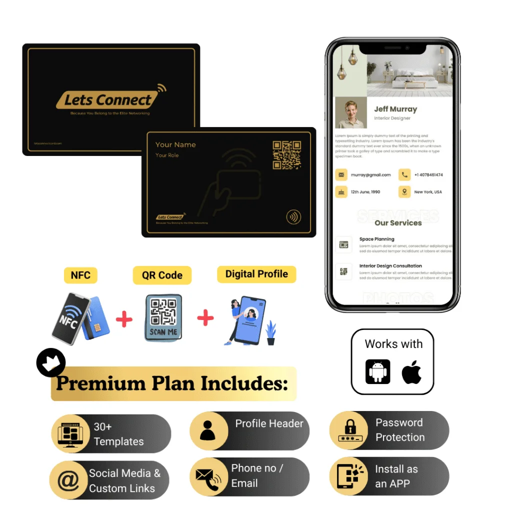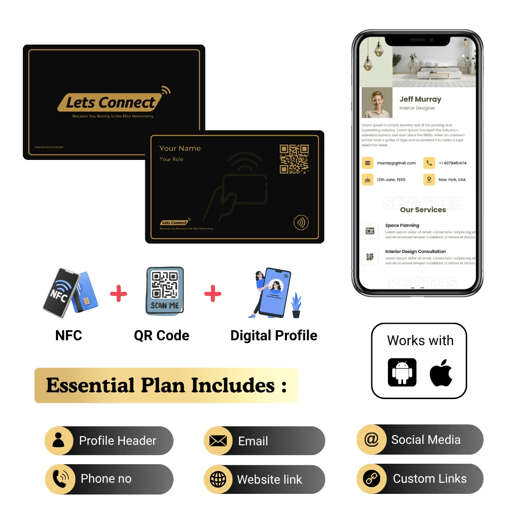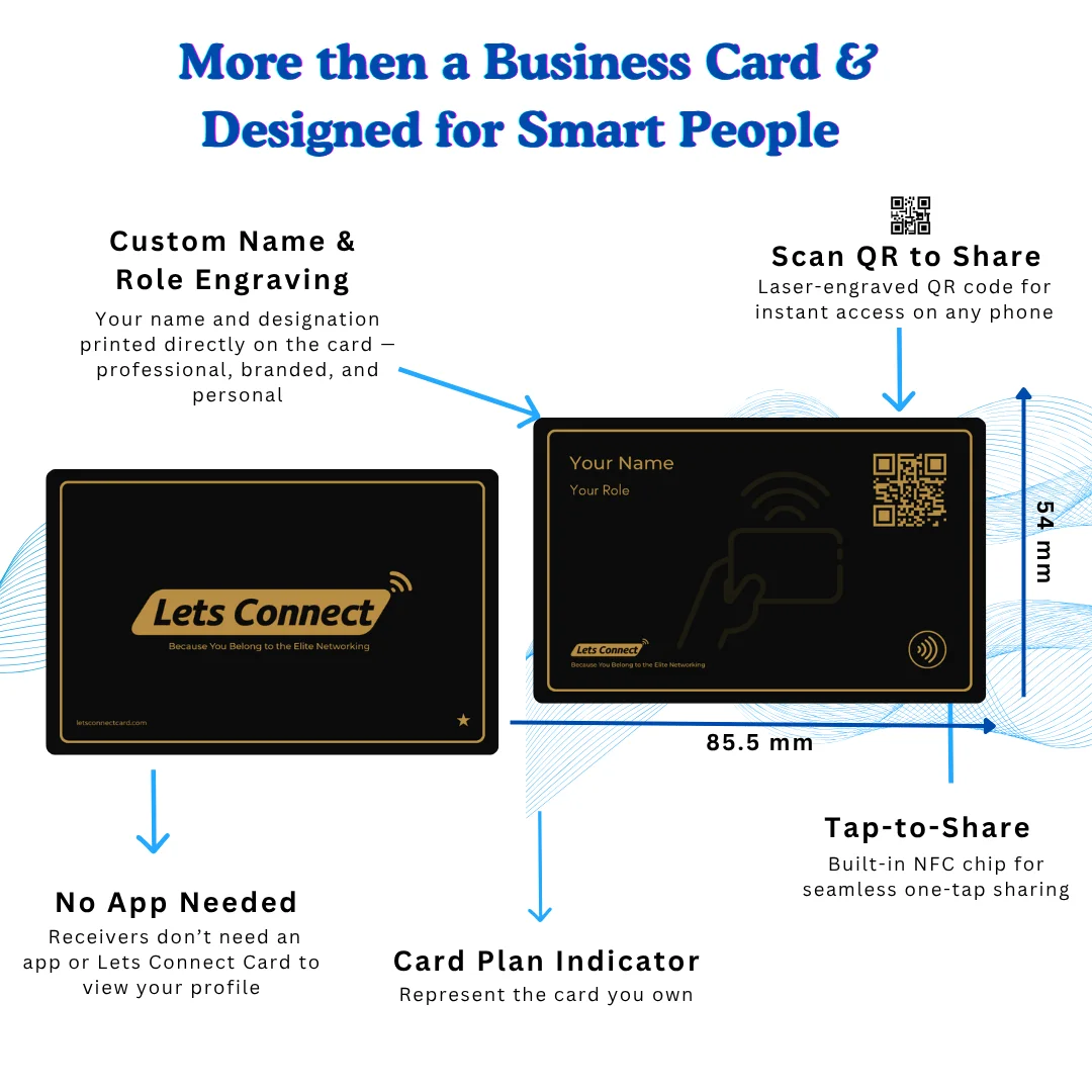 - Multi-Link Power – Share contacts, social media, portfolios, and websites from one card.